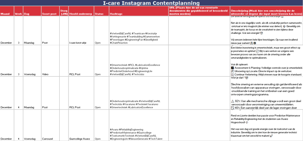 De planning is duidelijk. Idealiter keur ik graag 1x per maand alle content goed ipv dit per post te beoordelen. Dit is puur het plannen en inrichten van je dagdagelijkse werkzaamheden. Timemanagement is hierin handig.